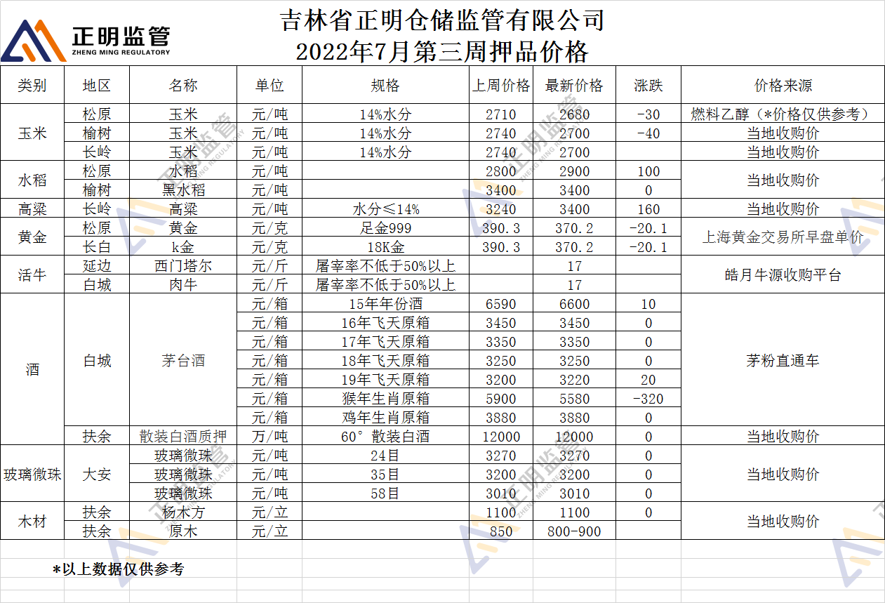 2022年7月第三周押品价格