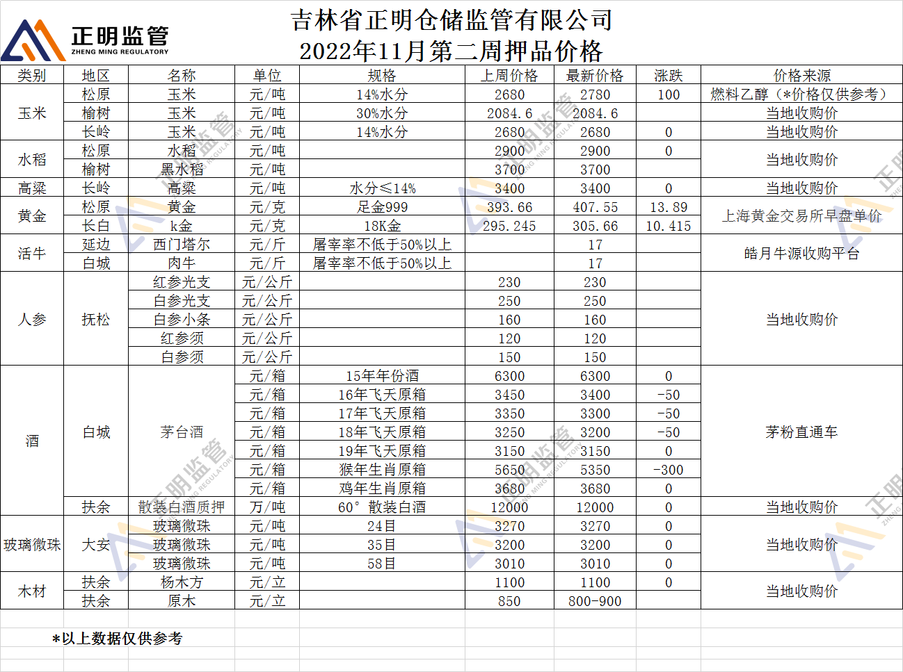 2022年11月第二周押品价格